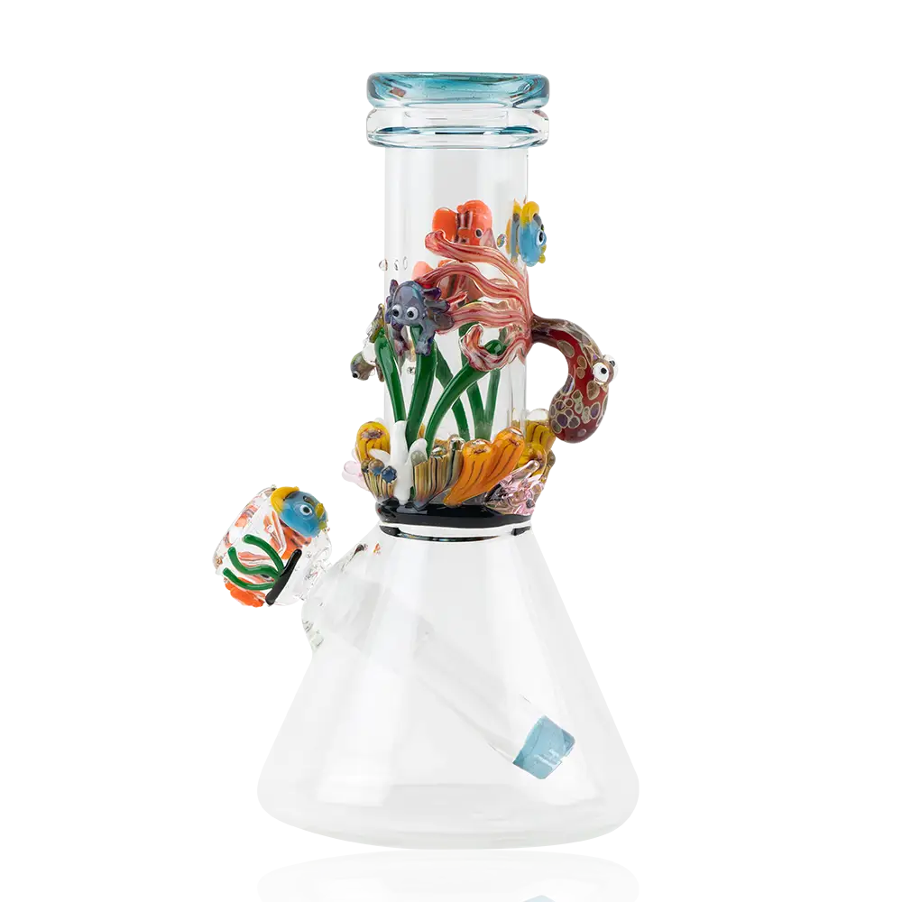 The "Under the Sea" theme brings a playful and vibrant touch to your smoking experience. The beaker base provides excellent stability, while the high-quality glass ensures durability and clean flavor. The detailed bowl piece enhances the overall aesthetic, making each session a visual delight. It's not just a water pipe; it's a conversation starter.