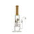 The most excellent night ahead with this beautiful rig! At a modest stature of 10 inches and constructed in layered tube design, this particular rig is among the most dependable around. Made out of thick all American Glass, this water bong is incredibly durable. Within the tube, you see a showerhead percolator which not only filters but also provides a smoother smoking experience. The mouthpiece and part of the tube are colored a soft sandy color and the base itself is adorned with a pair of golden palm trees.
